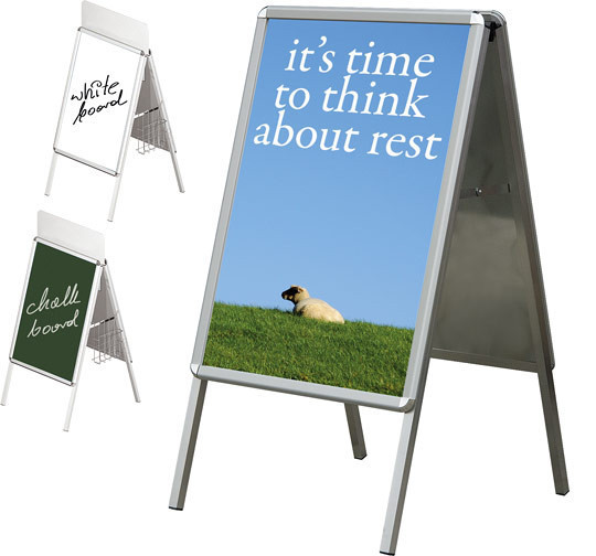 Алюминиевая рамка 32 мм, легко и удобно открывается. Пластиковые уголки, плакат защищён антибликовой плёнкой. Под заказ комплектуется стальным листом для письма маркером или мелом, а также доской для логотипа и корзинкой для рекламной продукции. Возможность дополнительно докупить белый стальной лист для письма маркером (BSTZ), либо зелёный лист для письма мелом (BKTZ).